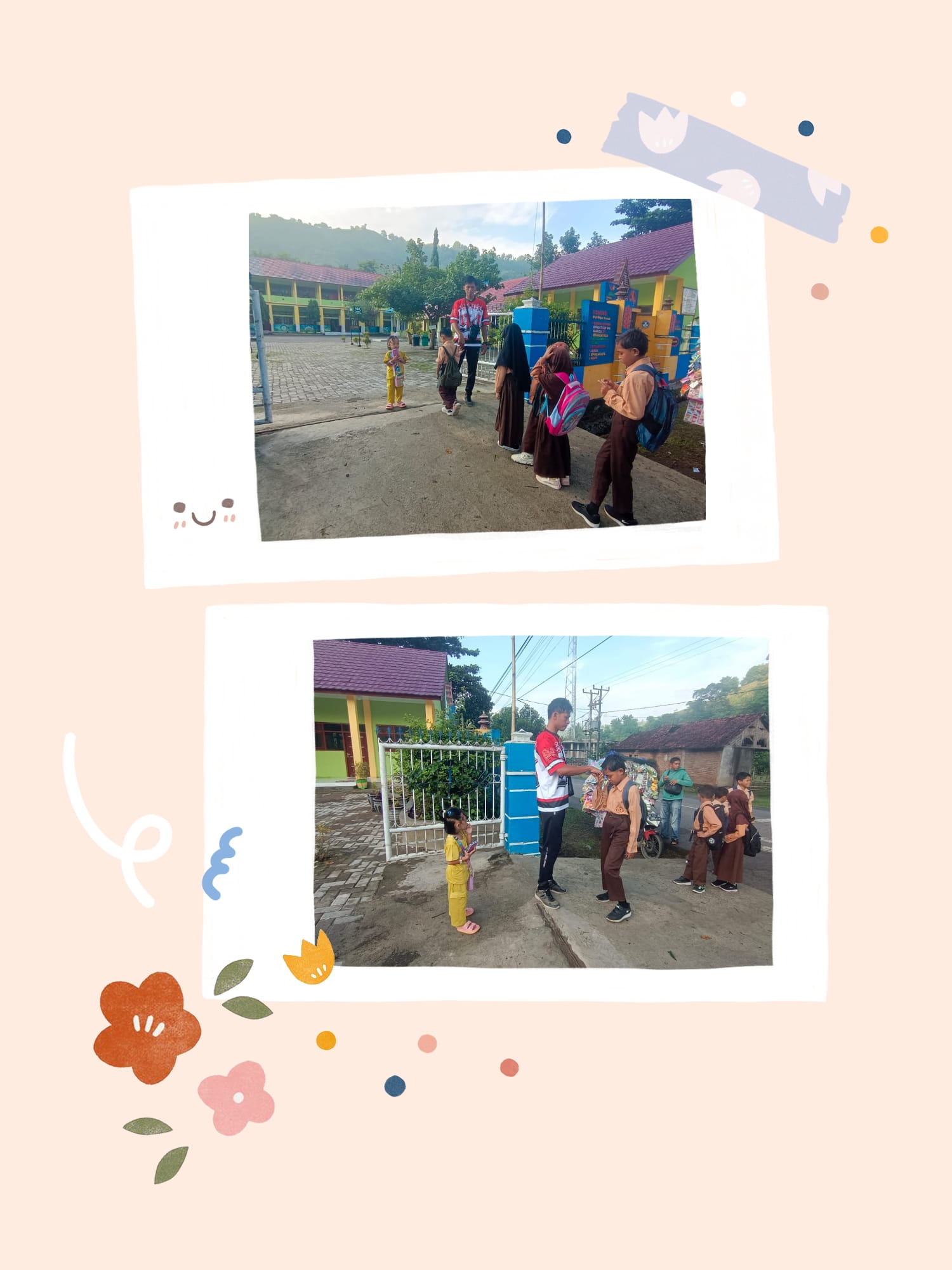 Penyambutan siswa di pintu gerbang oleh guru piket