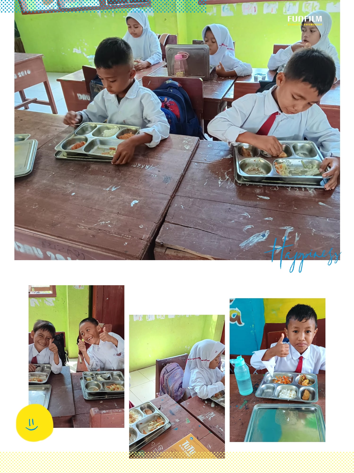Seluruh siswa tampak antusias saat menerima makanan bergizi yang telah disiapkan. Kegiatan ini dimulai sejak pagi hari dan berlangsung hingga menjelang waktu istirahat. Guru-guru turut membantu proses pembagian agar berjalan cepat dan tetap menjaga kebersihan serta ketertiban.