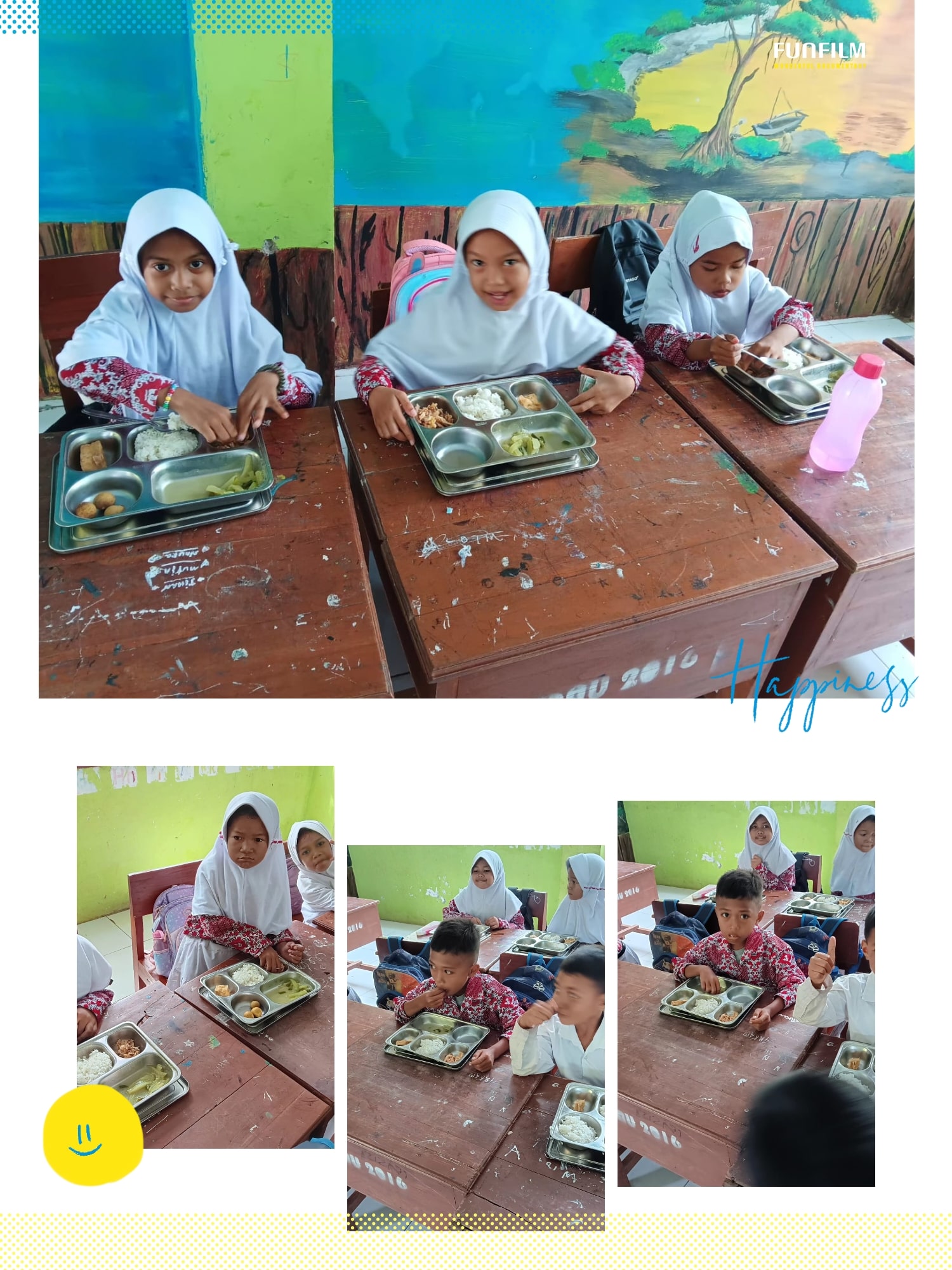 Para siswa tampak antusias saat menerima makanan bergizi yang terdiri dari nasi, lauk pauk, sayuran, buah, dan susu. Guru-guru juga ikut mendampingi dan mengingatkan pentingnya pola makan sehat serta kebiasaan hidup bersih. Suasana menjadi lebih hangat karena kegiatan ini tidak hanya memenuhi kebutuhan nutrisi, tetapi juga menumbuhkan kepedulian terhadap kesehatan.