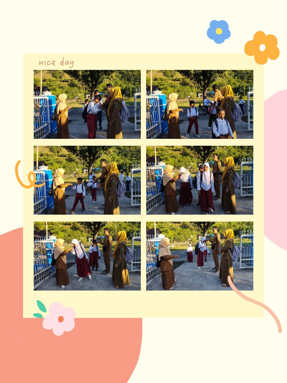 Sejak pagi hari, para guru piket sudah bersiap di depan gerbang untuk menyambut kedatangan siswa dengan senyum, salam, dan sapa. Para siswa pun datang dengan tertib, menyalami guru sebagai bentuk penghormatan dan pembiasaan karakter yang baik. Suasana hangat dan penuh kekeluargaan tampak mewarnai kegiatan tersebut.